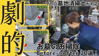 墓地清掃士による、お墓のお掃除のビフォア&アフターです。