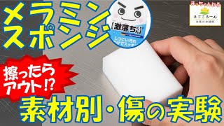 【擦ったらアウト!?】メラミンスポンジ素材別・傷の実験